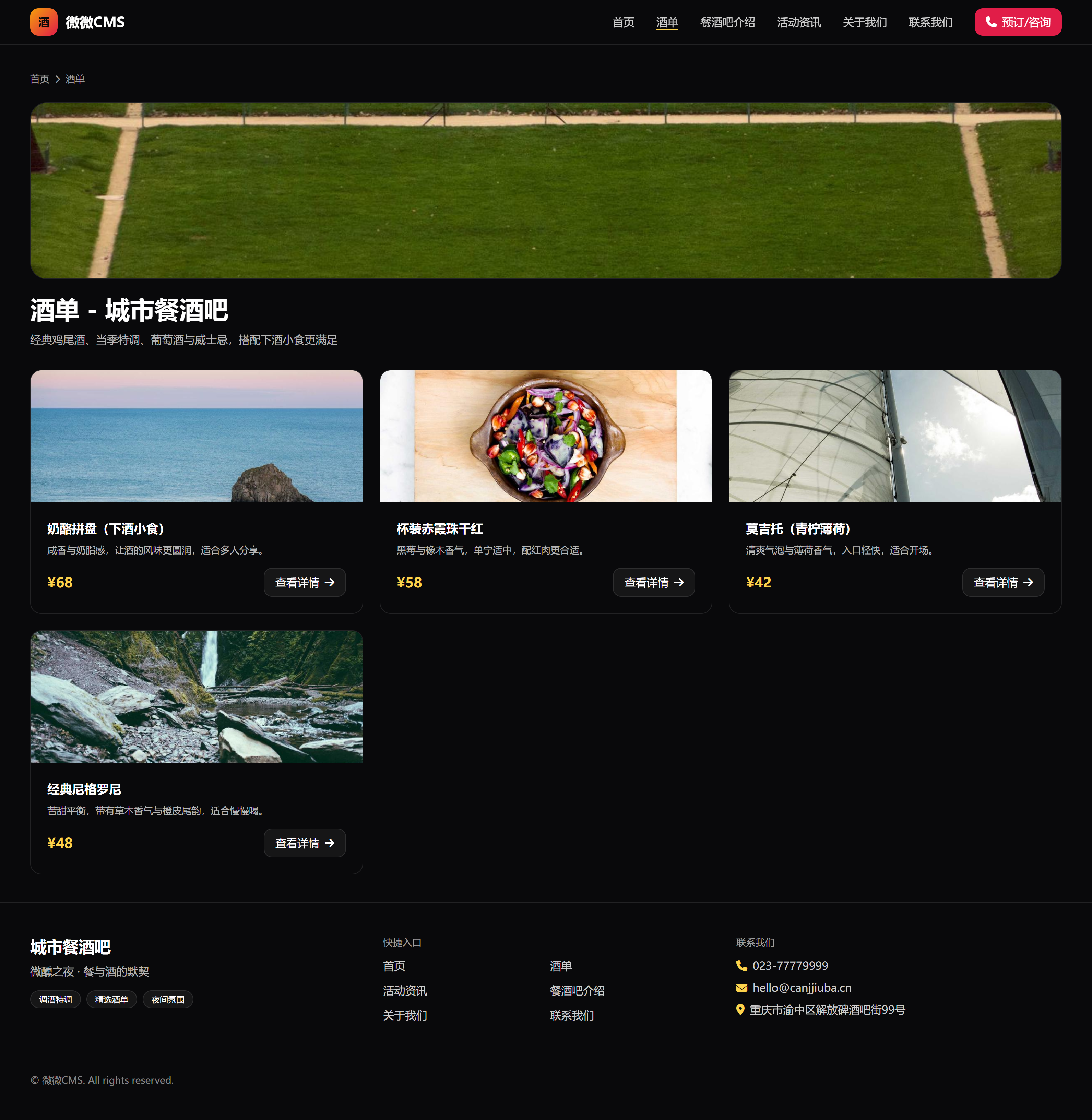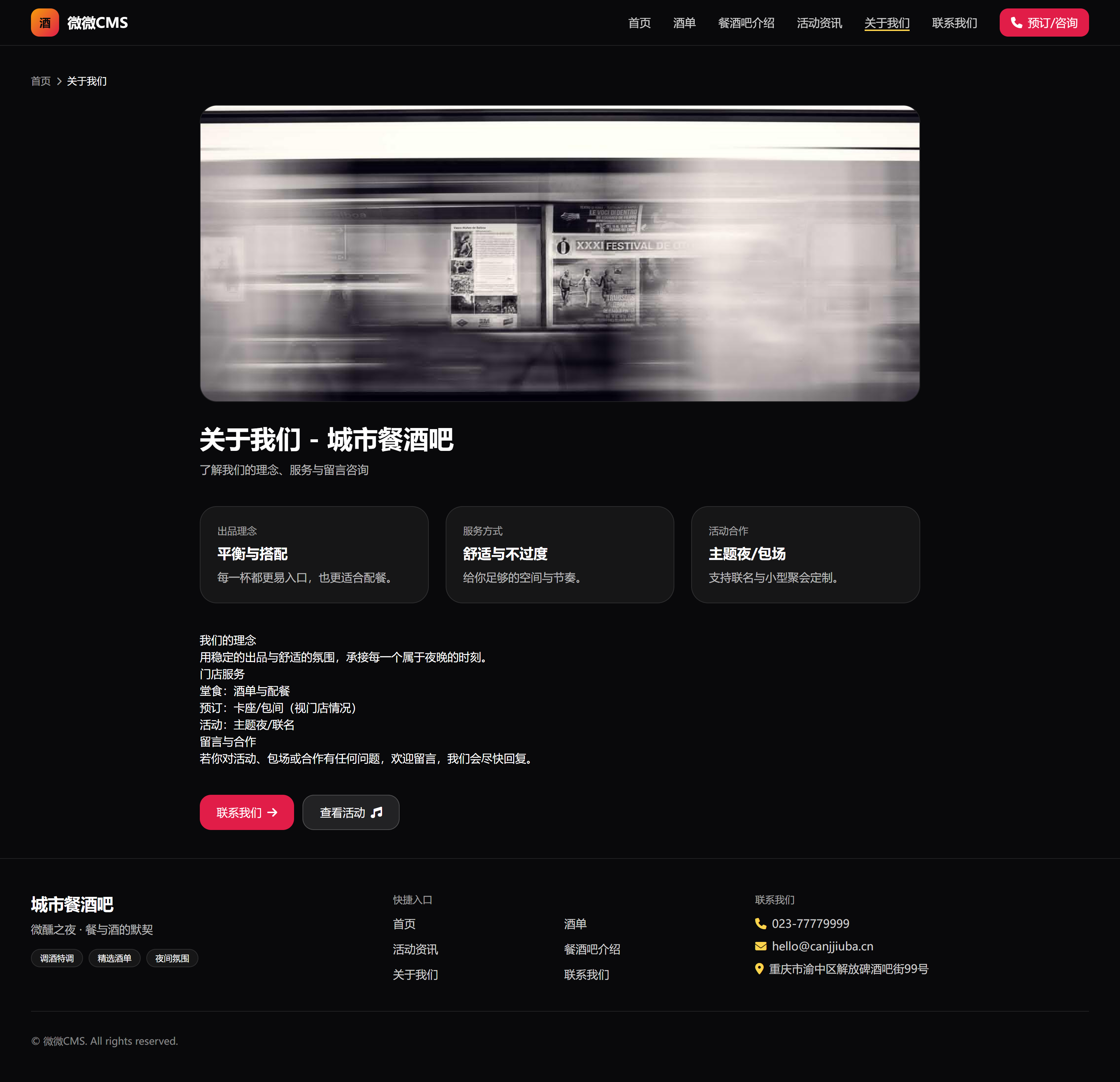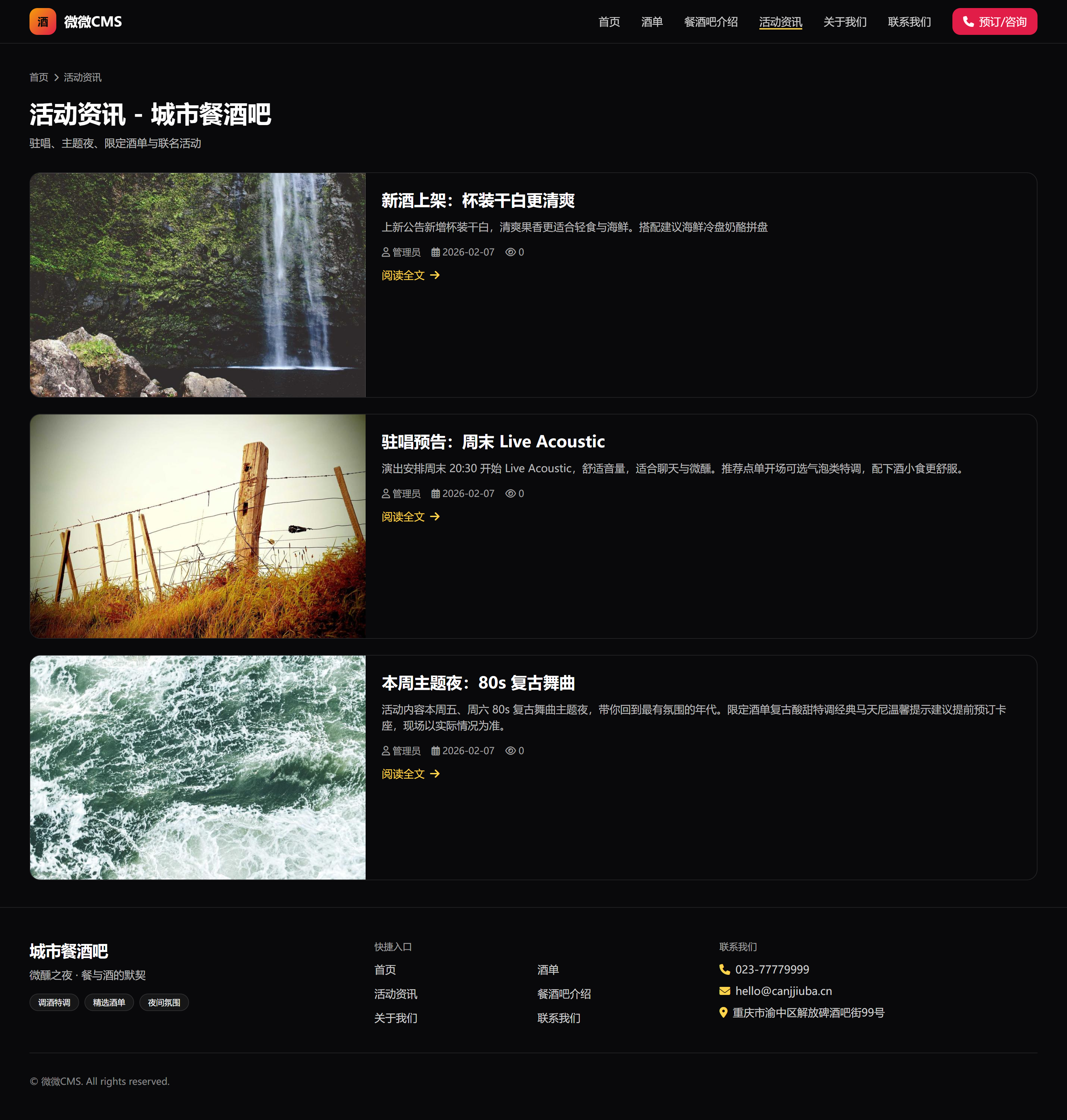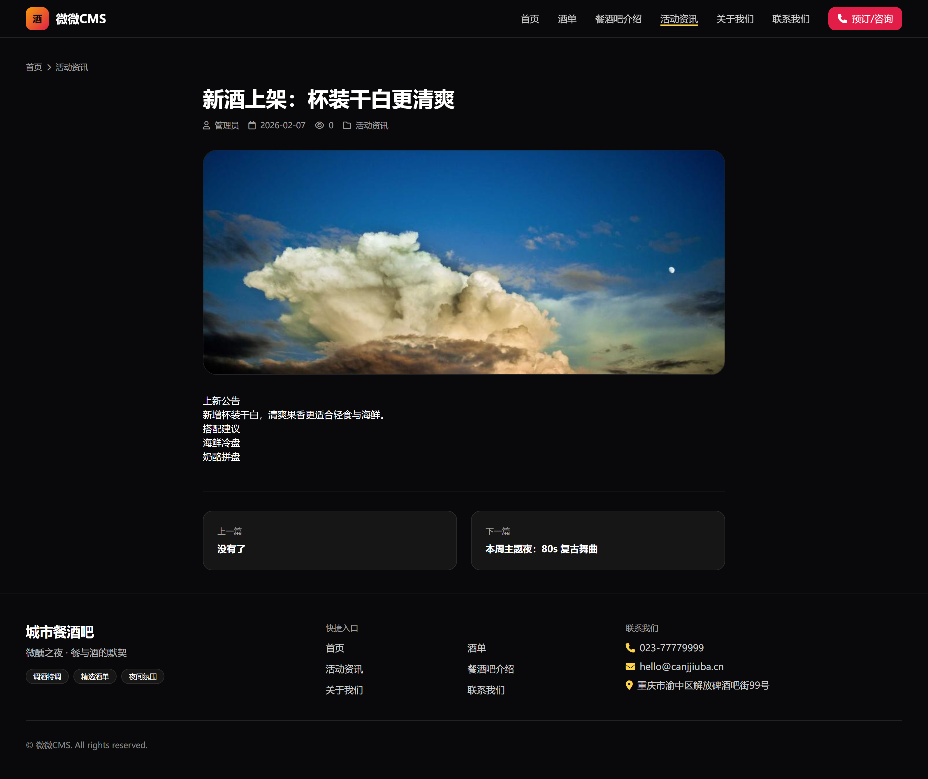 餐酒吧餐饮官网模板(酒单/餐酒吧介绍/活动资讯/关于我们/联系我们)