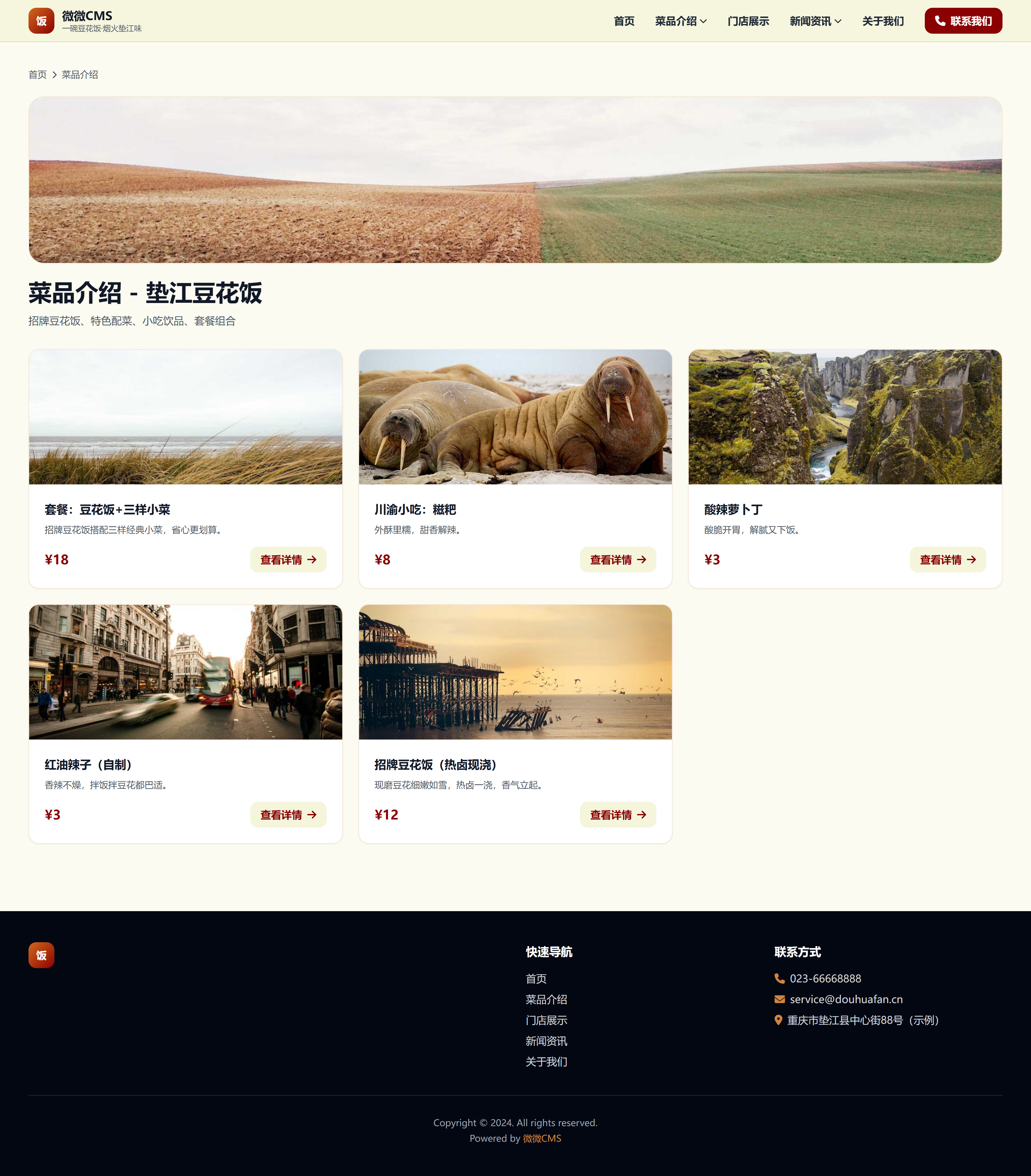 垫江豆花饭餐饮品牌官网模板(首页/菜品介